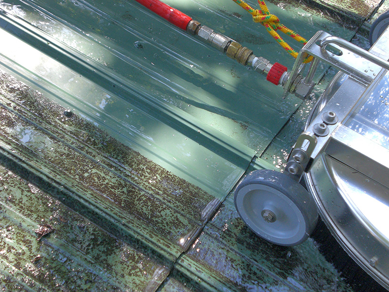 This Roof Cleaner provides safety for the operator while cleaning effectively and efficiently! Professional Roof Cleaners will love this stainless steel cleaner with adjustable height and width and quad bearing swivel.