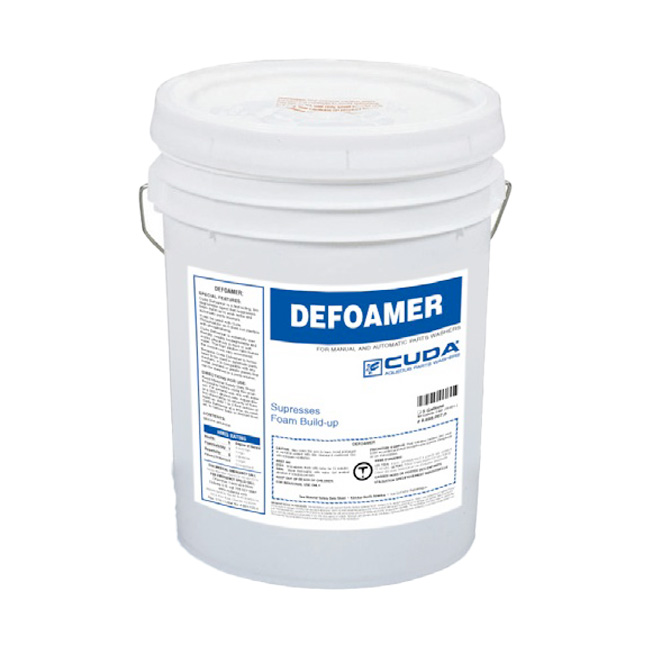 Too much foam can limit water pressure, negatively affecting cleaning efficiency. Cuda Defoamer is a fast acting, biodegradable agent that suppresses foam build up in soak tanks and automatic parts washers. It can be used with Cuda Phosphatizer as it does not interfere with phosphatizing. Cuda Defoamer is extremely user-friendly, readily biodegradable and works effectively in hard or soft water. The high dilution ratio makes the cost-in-use very economical. Because Cuda Defoamer is formulated to be used in automatic parts washers, it is compatible with any metal, painted or plastic pieces that can be cleaned in a parts washer.