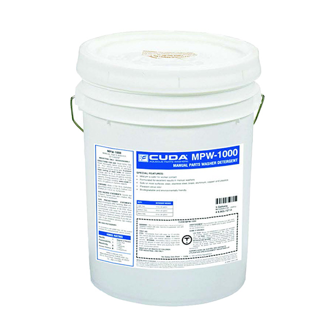 MPW-1000 is a readily biodegradable, moderate pH, water-based detergent formulated for use in manual parts washers and aqueous parts sinks. It removes greases, oils and grime, and can be used on most surfaces, including steel, stainless steel, brass, aluminum, copper and plastics. This detergent has a pleasant citrus odor.