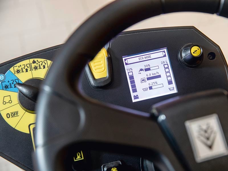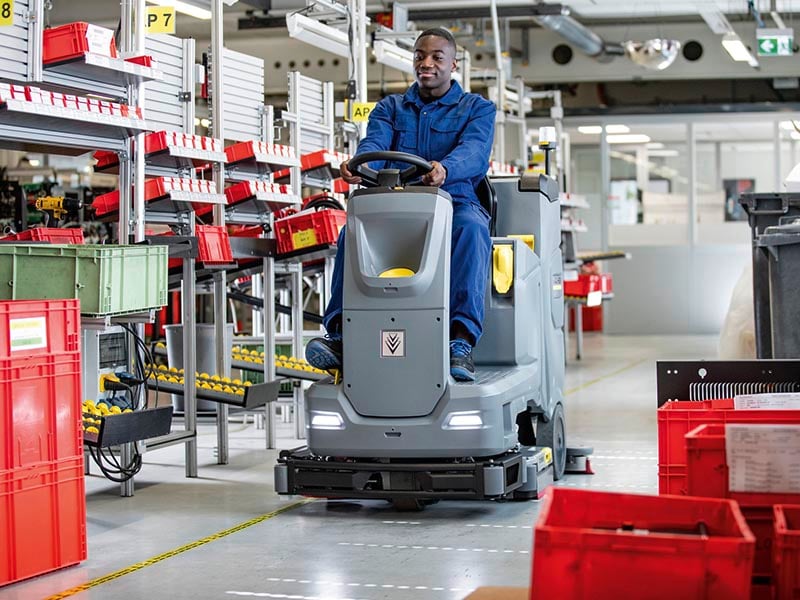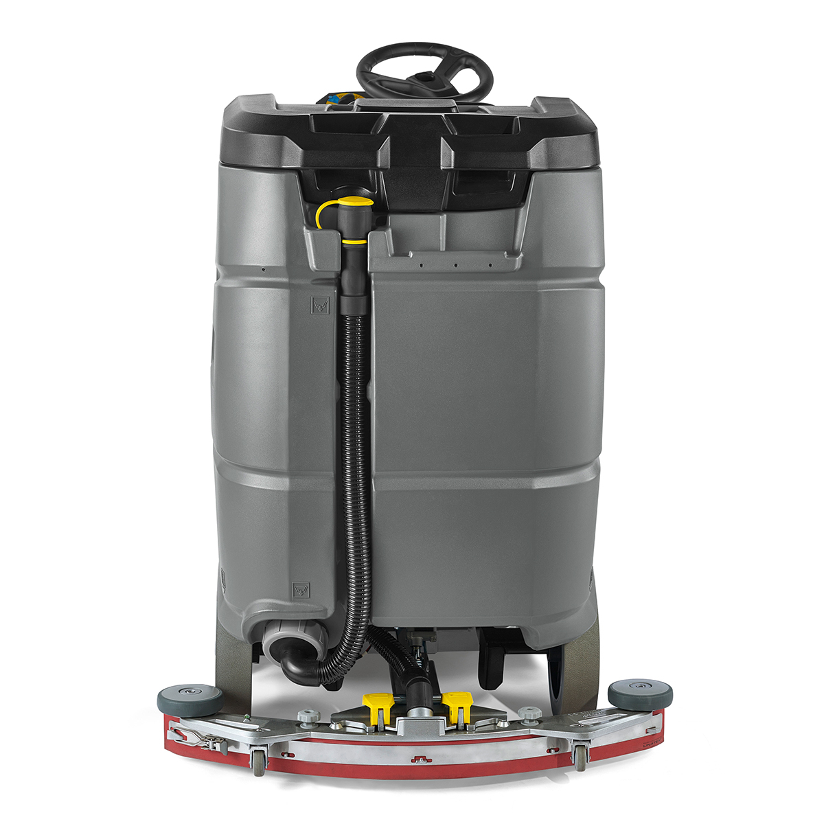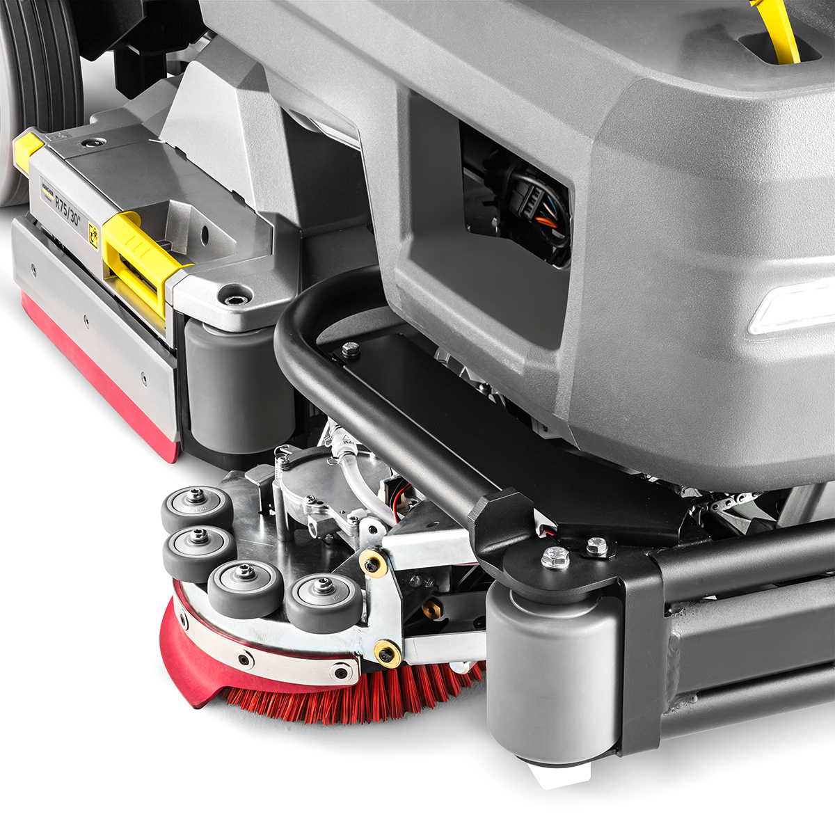 The ride-on B 75/110 R Bp scrubber is the most updated and compact scrubber in our product line-up. With outstanding suction performance including an all-new aluminum, die cast squeegee, you’ll have less moisture left behind. Big bumper wheels on the brand-new die cast brush head will help keep corners and walls free of unwanted marks. This also means easier maintenance and operation. With speed-dependent water supply, you’ll save water and detergents for when you need them most.