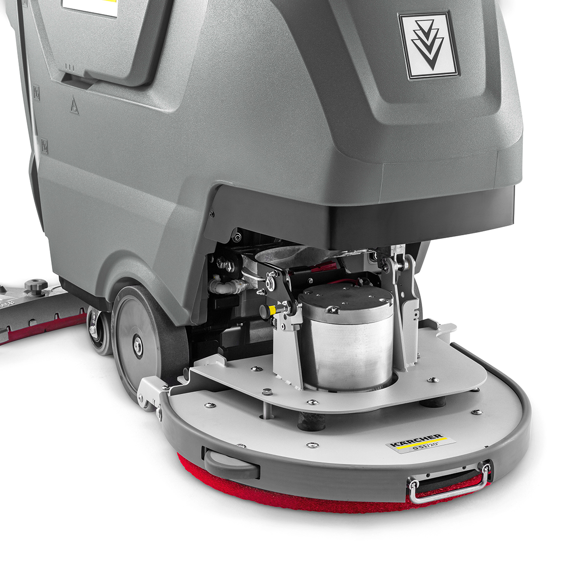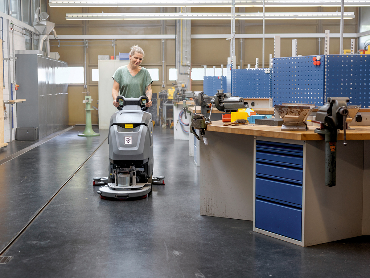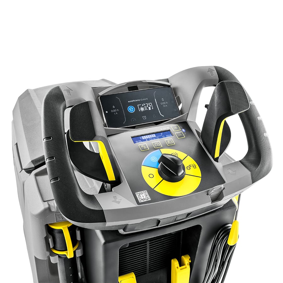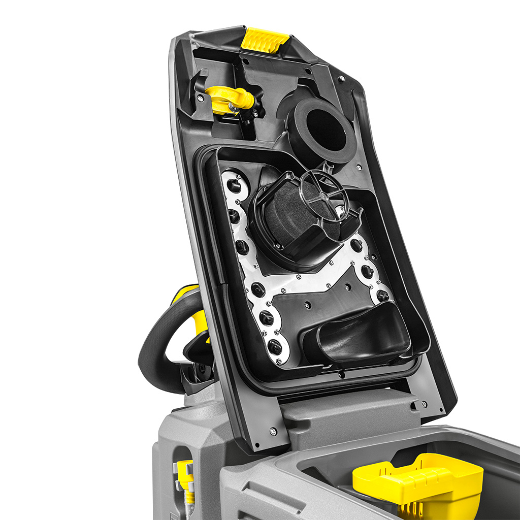 The B 50 W Bp walk-behind scrubber is the ideal companion for fast and efficient wet cleaning of floors and hard surfaces. It delivers cutting-edge cleaning technology in a slim design. The B 50 W sets new standards, with its reworked design and power units ensuring impeccable cleaning results over an area of up to 18,200 square feet. The machine can be powered by a choice of AGM or Lithium batteries. Easy to operate, quiet and efficient, the B 50 W is the perfect companion for real pros. The brush head and squeegee assembly are made from cast aluminum, making the walk-behind machine extremely durable and sturdy. The parabolic squeegee ensures perfect suction, even on uneven surfaces and in tight turns. The R 55 cylindrical brush head ensures thorough and powerful cleaning – especially on textured surfaces. The auto-rinse function enables contact-free cleaning of the dirty water tank, and topping up the freshwater tank is a breeze with the universal filling hose, allowing easy access to fresh water from any tap.