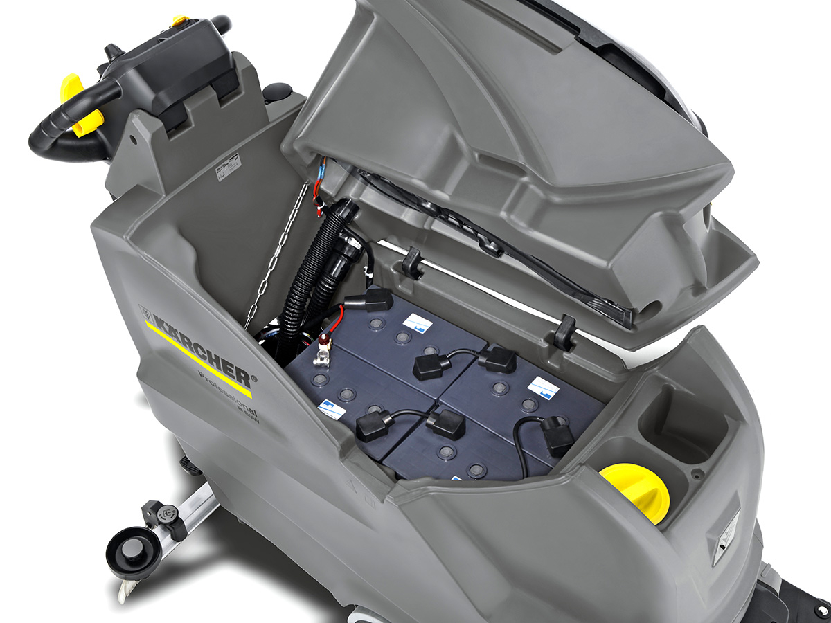 The B 80 W BP scrubbers cover a lot of area quickly, but are still easily maneuverable.  They feature a robust, interchangeable, maintenance-friendly cylindrical scrub deck.  Karcher Fleet comes pre-installed on these machines to provide you with complete visibility of your machine.