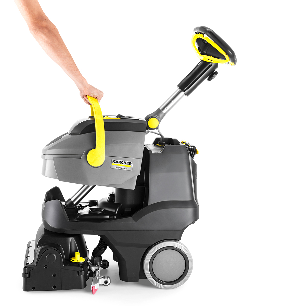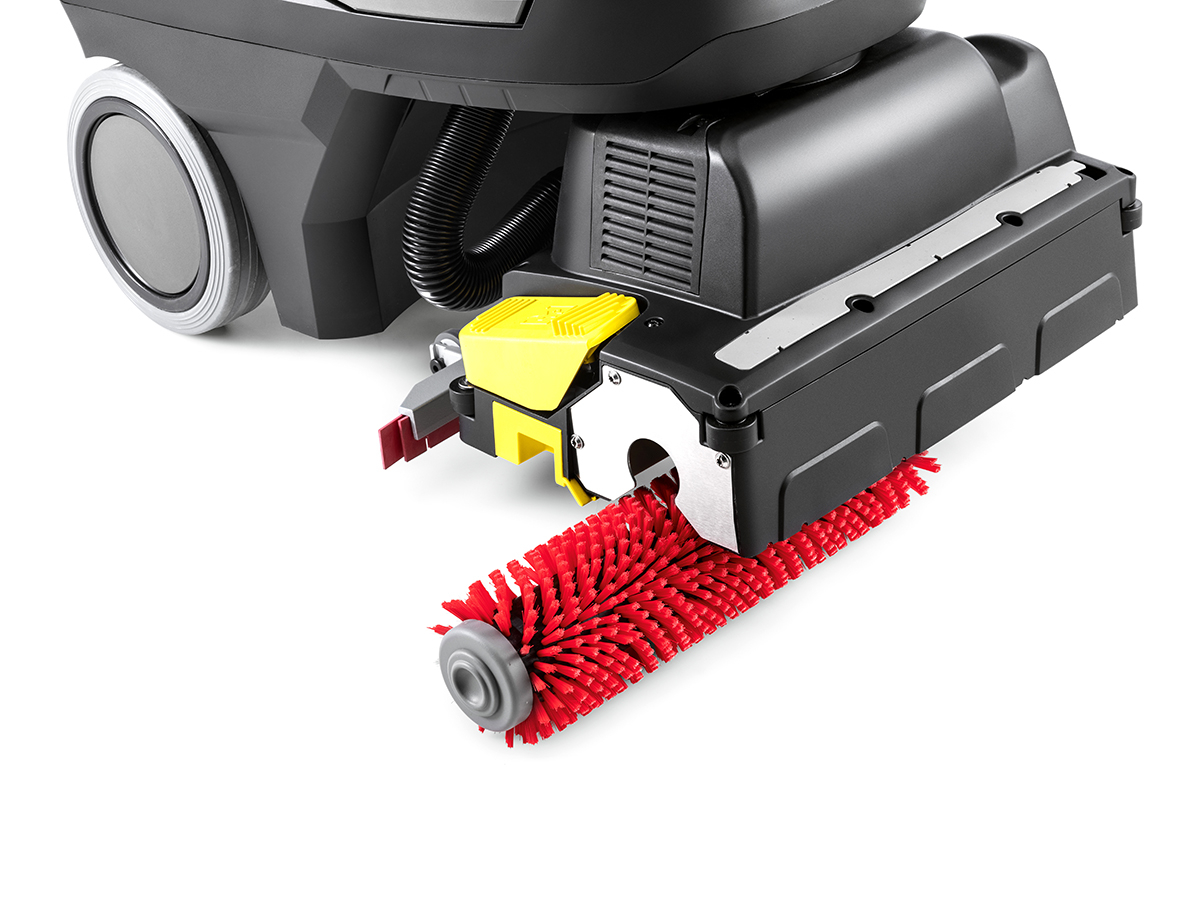 Thanks to our innovative steerable scrub deck, the BR 35/12 C Bp can clean up to the wall at a 90° angle. It can also clean in reverse or any direction. The height-adjustable, telescoping steering column allows optimal ergonomics for any operator. The folding steering colum also makes it easy to secure for transport.