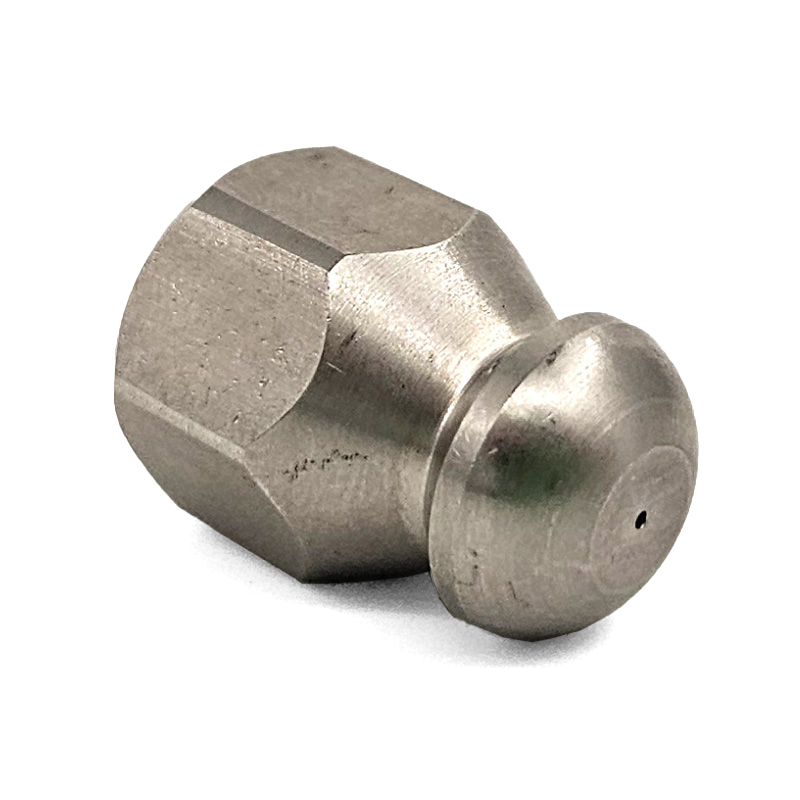 The reverse jets on the fixed sewer nozzles pull the hose through the tube or sewer line and blast debris from the line or tube walls. Forward ports blast into the pipe and break up clogs and debris.
