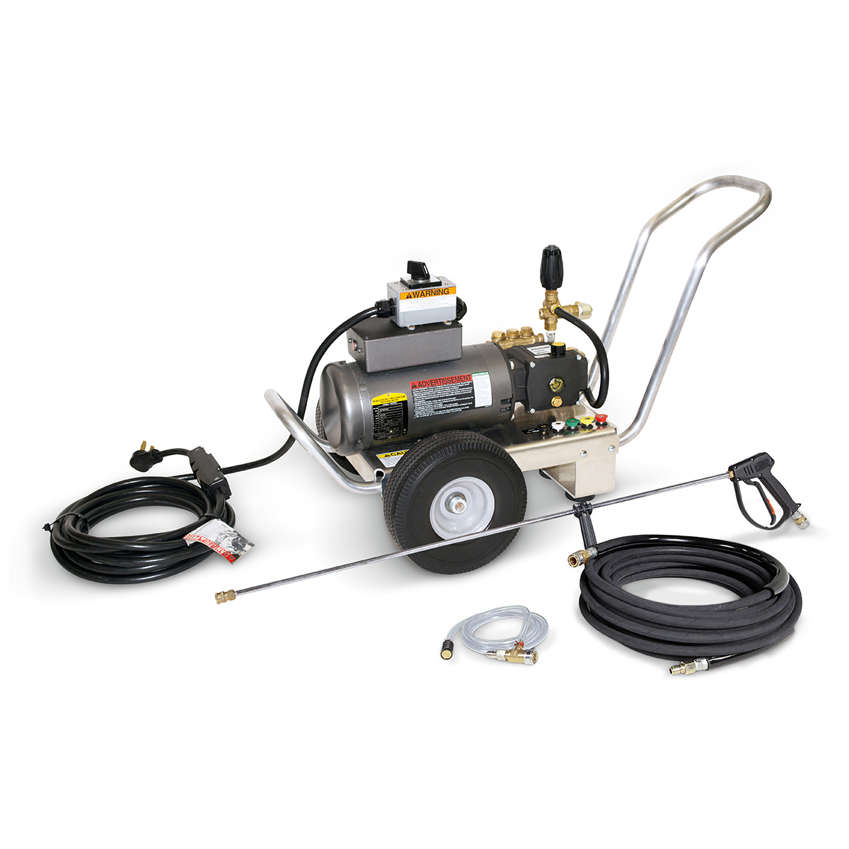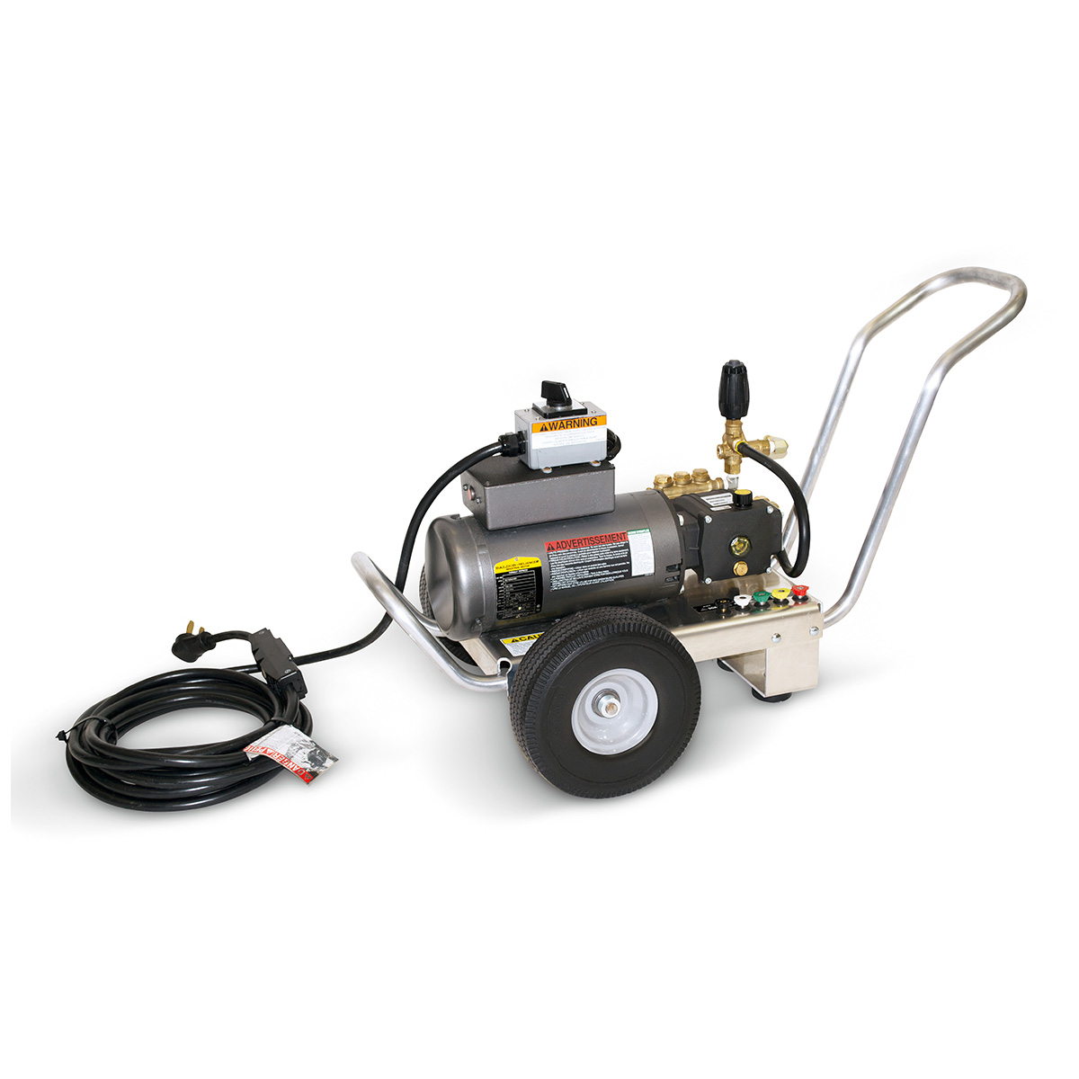 The HD Series electric carts are corrosion-resistant aluminum cold water pressure washers that easily convert from a cart to a skid for maximum cleaning versatility. Low profile handle and compact footprint. Includes bypass loop for additional pump protection.