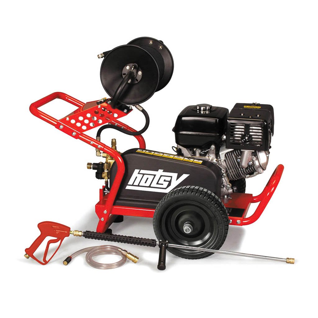 The BX Series is similarly rugged to the BD Series, but more compact. Powered by Honda or Briggs & Stratton Vanguard engines, the BX series delivers cleaning power up to 3500 PSI and an all-steel frame protected by a durable powder coat finish. The Hotsy triplex pumps carry a 7-year limited warranty. Equipped with a 50′ hose.