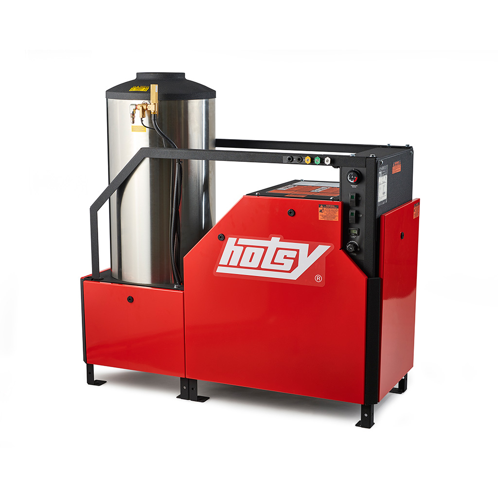 Hotsy’s 1400 Series of innovative stationary models are packed with standard features! The most impressive is the programmable smart control automation. Safety is key with a pressure relief valve and locking lid and side panels around the belt and pulleys to keep users safe. These electric-powered washers are available in either LP or Natural Gas fired models. New models have the same footprint as previous generations, so users can feel confident about upgrading. Panels may be easily removed for access to the machine components for servicing. All models are ETL certified to the rigid UL-1776 safety standards. Features a Hotsy highly efficient Triplex pump.