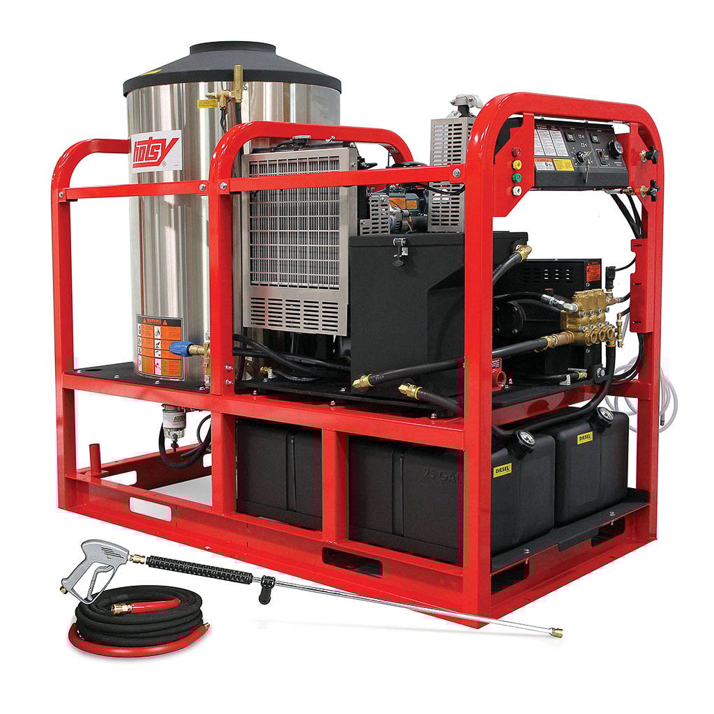 The Super Skid HSS Series is by far, the largest and most powerful of Hotsy’s hot water pressure washers. The Super Duty HSDS models feature a Hawk pump with lower RPM for long lasting durability; there’s literally nothing else on the market as robust, big & powerful. HSS models come standard with the reliable Hotsy triplex belt-driven high-pressure pump. Triple banded belt for more efficient power transmission. Models are powered by a 16 & 24 HP Kubota engines with electric start and all feature a 3/4-inch foil-backed insulated Schedule 80 heating coil with stainless steel skin and 5-year warranty. Two fuel tanks for longer operation, a high-efficiency Wayne burner and optional dual gun kit allows two users at one time.