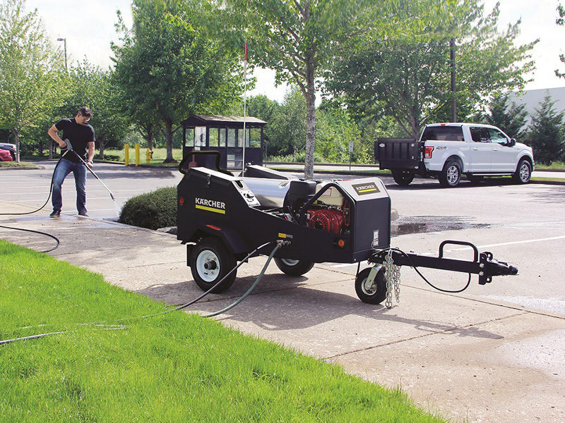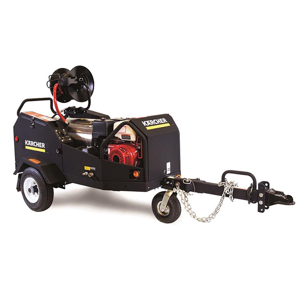 Ready to pick up and go at a moments notice, Karcher’s Tule Series HDS 3.5/40 Ge MT hot water pressure washer trailer provides the necessary cleaning power on virtually any job site which has a water source. Simply unhitch the Tule Series HDS 3.5/40 Ge MT and take the cleaning power where you need it most. The Tule Series trailer features a reliable Honda engine, 8 gallon diesel fuel tank, electric start with manual start backup and much more.