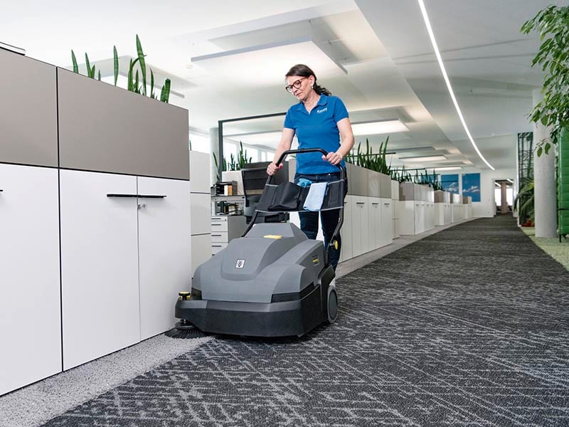 In just one round of vacuuming, our battery-powered CVS 65/1 Bp Pack carpet sweeper shows its strengths, impressing users with cleaning results comparable to those of an upright brush-type vacuum cleaner. The powerful 36 V lithium-ion battery allows up to 60 minutes of continuous operation and cleaning of around 19,375 square feet of carpet on a single charge. The efficient, two-step filter system comprising of a pre-filter and a PTFE-coated flat pleated filter for dust classes L and M ensures dust-free working, while its low operating noise of just 56 dB(A) also allows for use in noise-sensitive areas. The main sweeper roller on the carpet sweeper can be precisely adjusted to the type of carpet in question. This reduces wear on the rollers, effectively prevents damage to the carpet, and makes it possible to clean almost every kind of carpet. A battery and battery charger are included onboard as standard, as well as a side brush for cleaning corners and edges together with large wheels for easy transport.