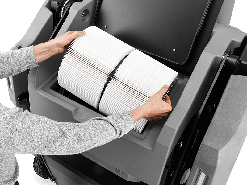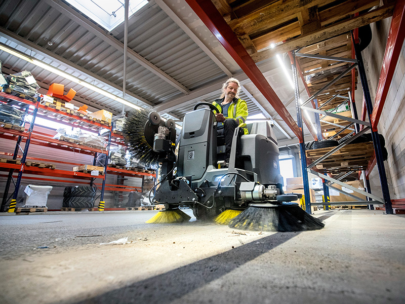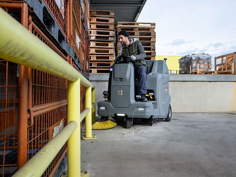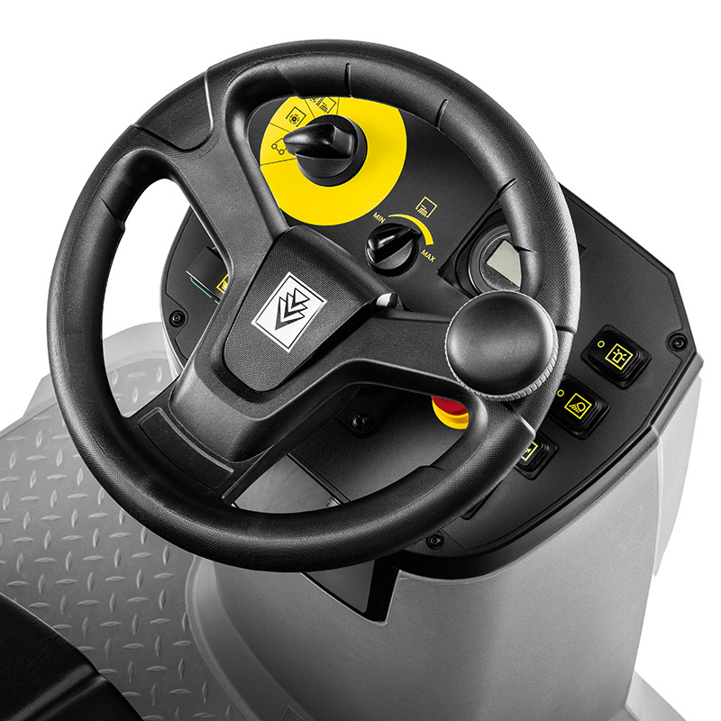 Featuring a floating main roller brush system for exceptional sweeping results, the battery powered KM 100/120 R Bp ride-on sweeper achieves a high productivity rate on one charge, while emitting zero emissions. The traction drive sweeper is perfect for larger cleaning tasks whether they are indoors or out. The side brush is retractable to prevent damage, and has an adjustable speed control for dusty areas to protect the user’s health.