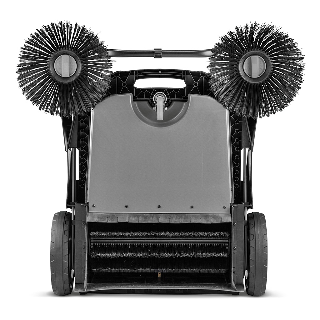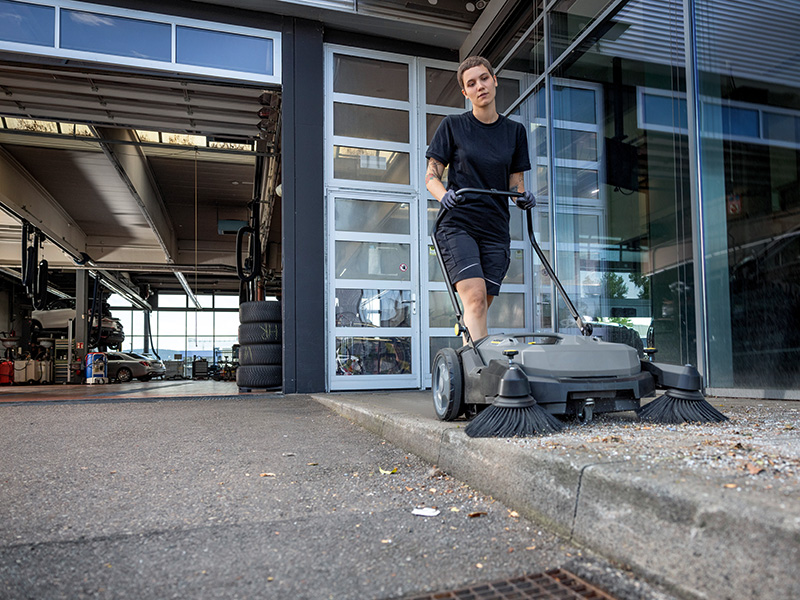 The KM 70/20 C 2SB manual sweeper makes cleaning surfaces effortless and virtually dust-free thanks to the filter, sweeping roller and side brush – whether indoors or outside. The area performance is 7 times higher than with a broom. The sweeping roller can be adjusted in 6 steps and, in combination with the variable side brushes, achieves an optimal cleaning result on different floors. A height adjustable push handle provides ergonomic operation for the intended user. The Home Base system allows for carrying additional items such as a waste can, to dispose of dust, dirt, debris and trash in one step. When the work is done, the KM 70/20 C can be stored in a space-saving manner in its parking position.