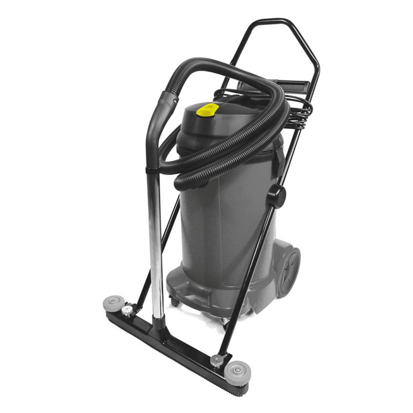 The NT 48/1 has a container capacity of 13 gallons. The wet/dry vac is equipped with a front mount squeegee for even more productive water pickup, plus integrated cable hook and accessory storage for suction tubes, floor tool, and crevice tool. The large cartridge filter with large filter surface provides a constant high suction power of the machine. The reliable float system provides a safe interruption of the air flow by all absorbed fluids. The drain hose is easily accessible, sturdy chassis with big wheels and castors made of metal with fixing brake and integrated recessed grip at the container a comfortable transport is enabled.